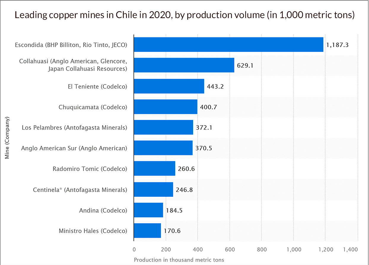 - Mining accounts for 53% of Chile’s exports (9% GDP)*